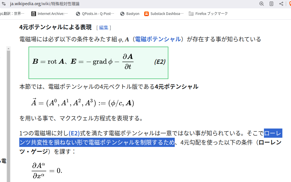 (そもそもベクトルポテンシャルは「数学的に便利だから導入された」と大学では習いました。。。だから少なくともスーパースカラーポテンシャルを仮想的に導入しても問題はないはずです。)
