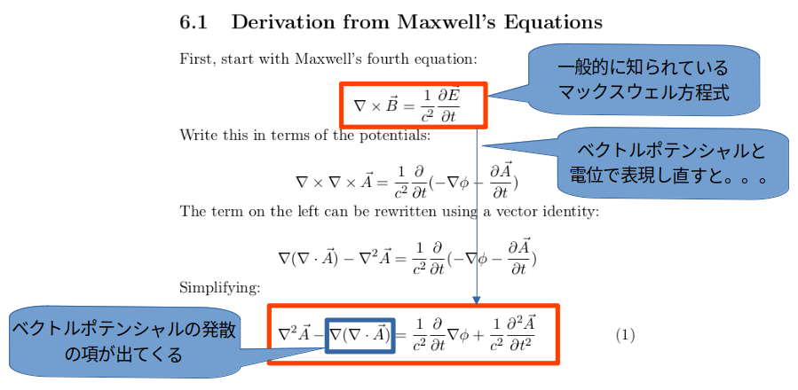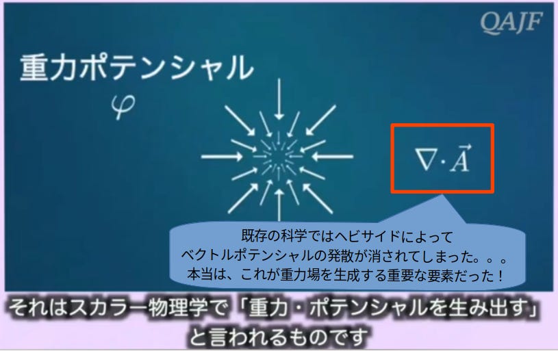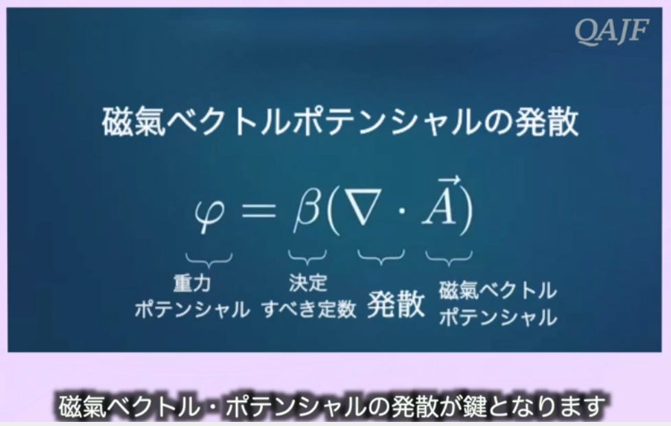 現在の電磁氣学で無視していたベクトルポテンシャルの発散が、実は重力ポテンシャルの生成に寄与するものだった