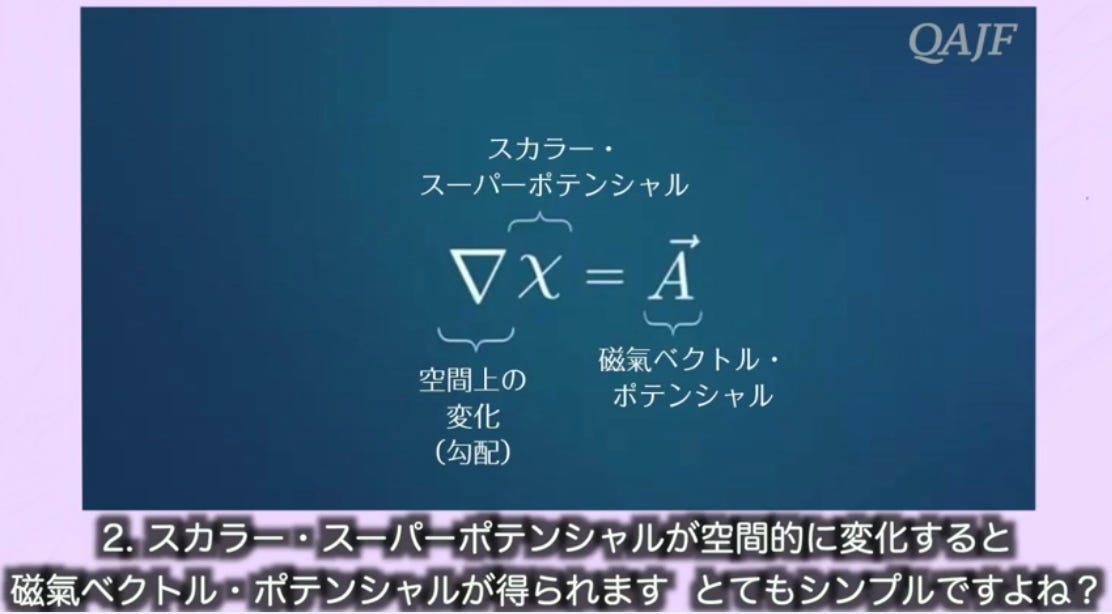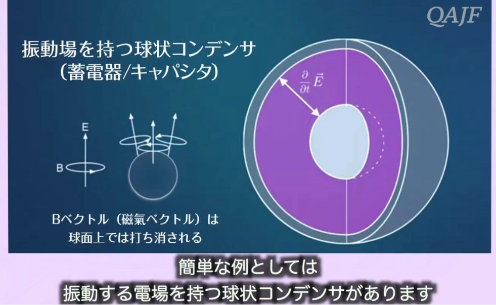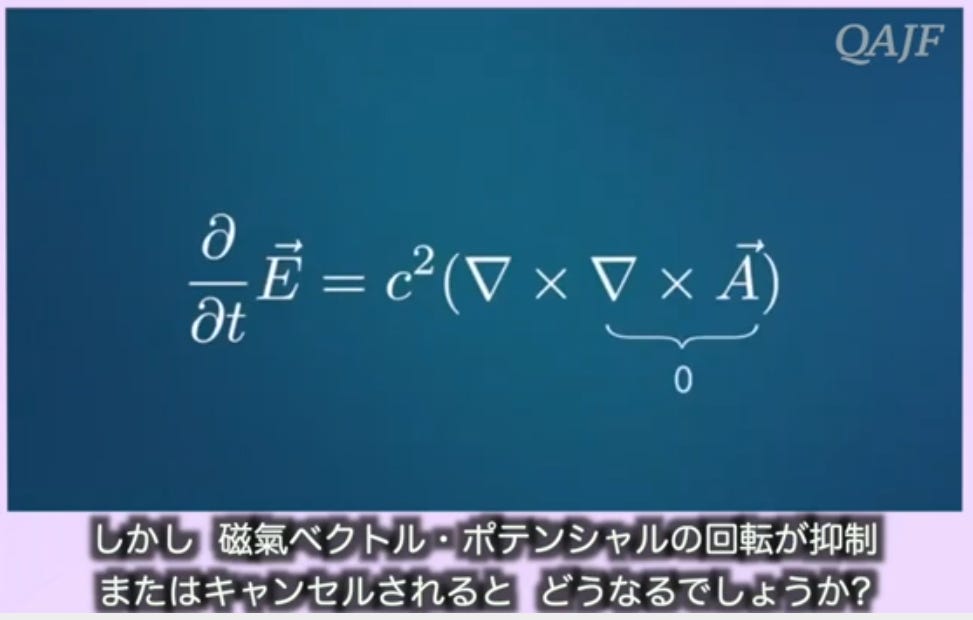また、動画ではベクトルポテンシャルによって生じる磁氣が抑制またはキャンセルされた場合にどうなるかという話が紹介されています。