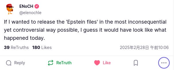 しかし、エプスタインファイル公開について、このようなコメントもありました。。。