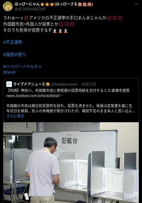 日本政府、自治体、在日カルト、警察などがグルで不正選挙を行っていたんでしょう。。。本来なら無効化されなければならない不正な選挙結果を、そのまま有効なものと見做していますからね。。。