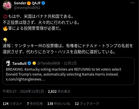米国の話になりますが、2024年米国大統領選挙の不正も2020年同様しっかり行われているようです。。。