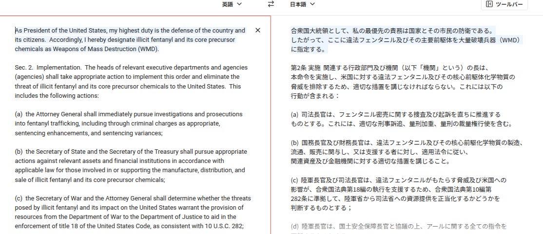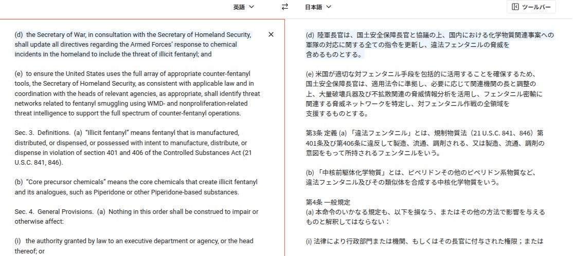 日本においても、フェンタニル製造・流通に関与した組織・人物は軍によって逮捕されることになりますね!