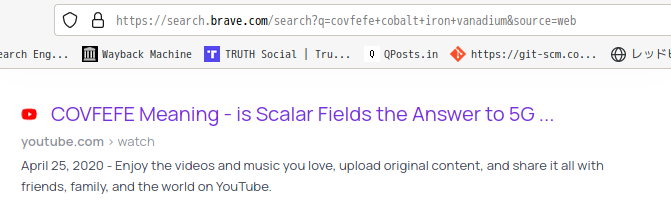 この記事を書くにあたって、COVFEFE の情報を紹介しようと思い、2022/04/30 時点で brave で検索してみました。
