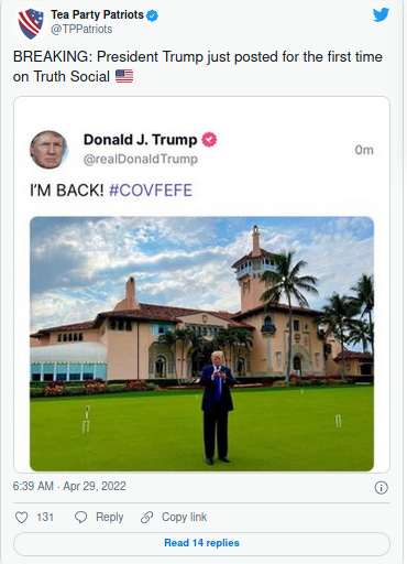 #COVFEFEメッセージにはいろいろな意味が含まれているのだとは思いますが、トランプ大統領の TruthSocial の 1st 投稿は、和多志にはとても心強い励ましになります!
