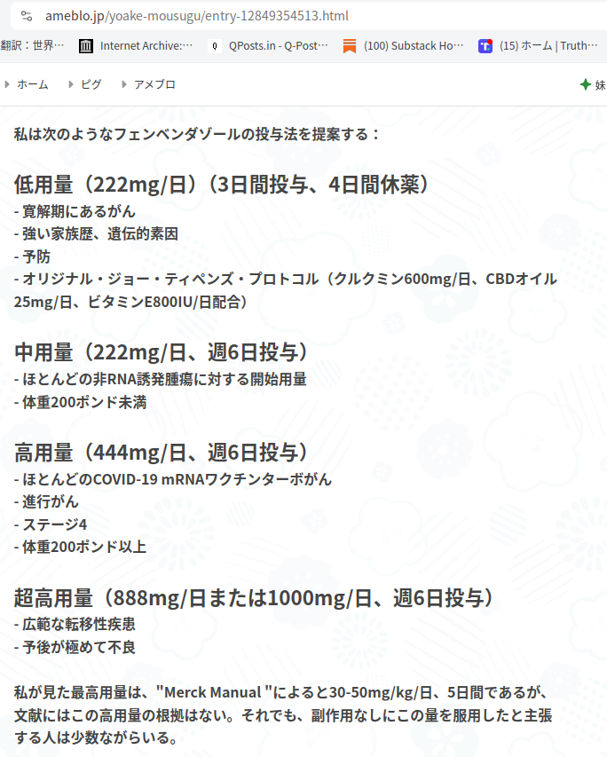 これはネット上で提案されていたフェンベンダゾールの処方箋です。