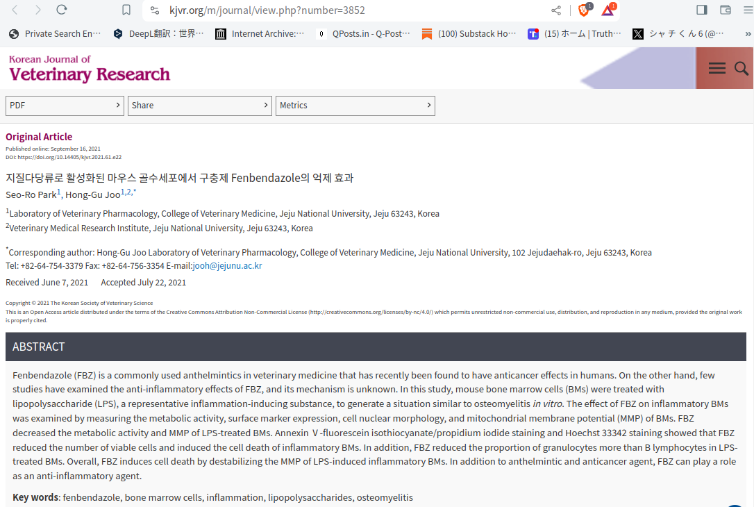 在日韓国人は、この韓国のフェンベンダゾールの研究レポートを読めるでしょう