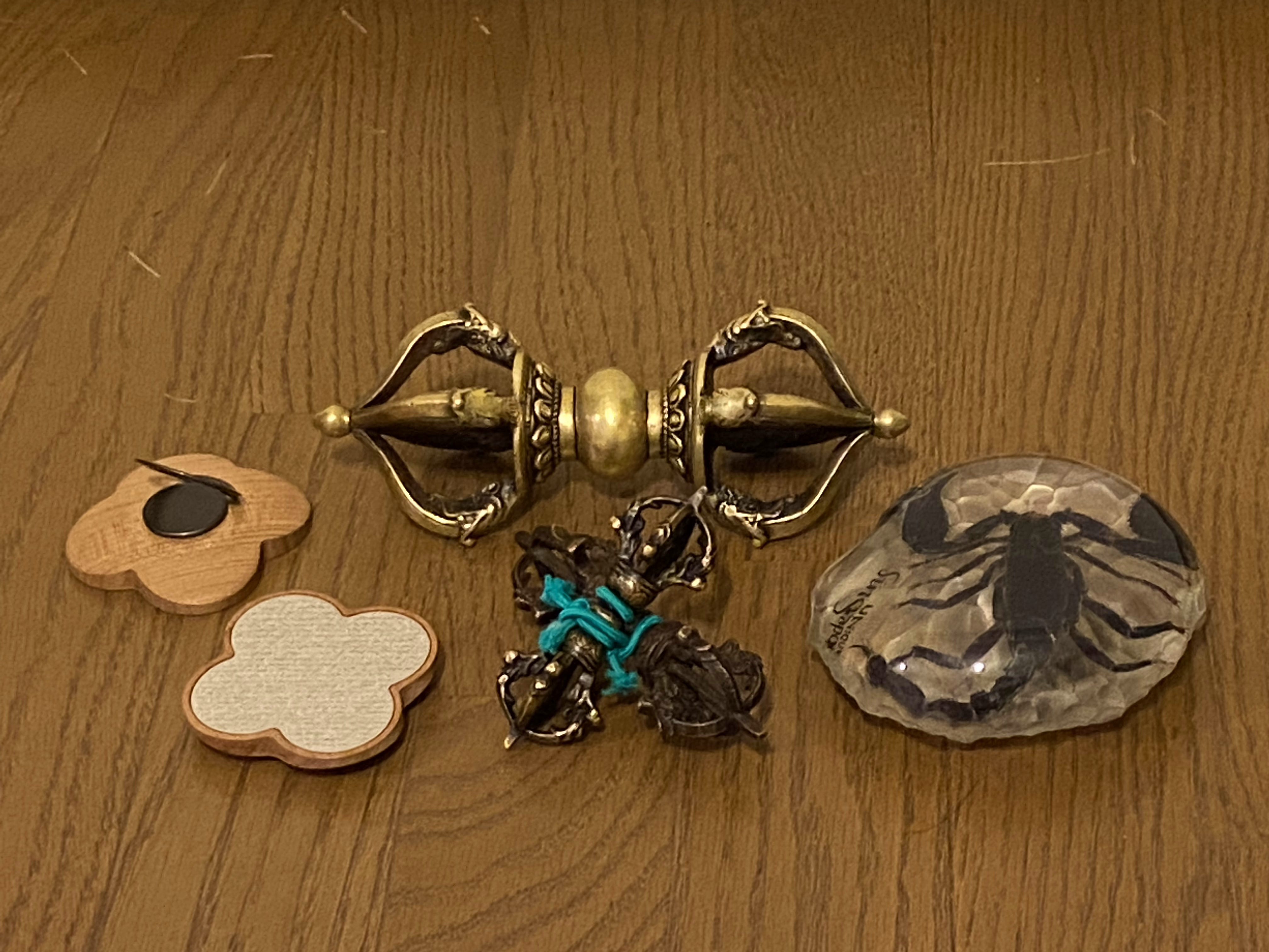 ヴァジュラと蠍の置物と真言おふだが、中国に渡航したときの scalar 攻撃で和多志を助けてくれたんです!