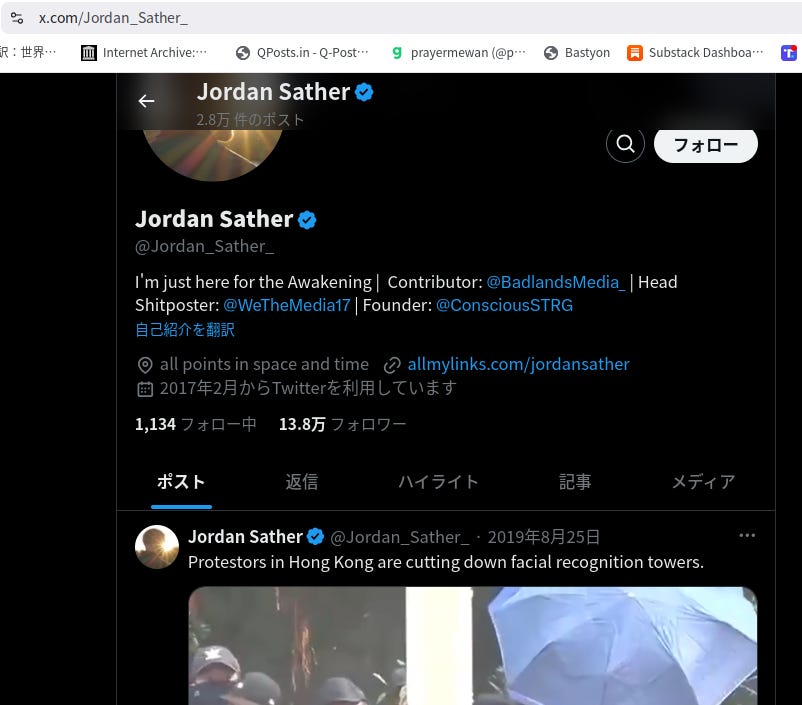 これは一例ですが、Jordan Sather さんのアカウントのページを見ても、直近の投稿は見れないようになっています。。。